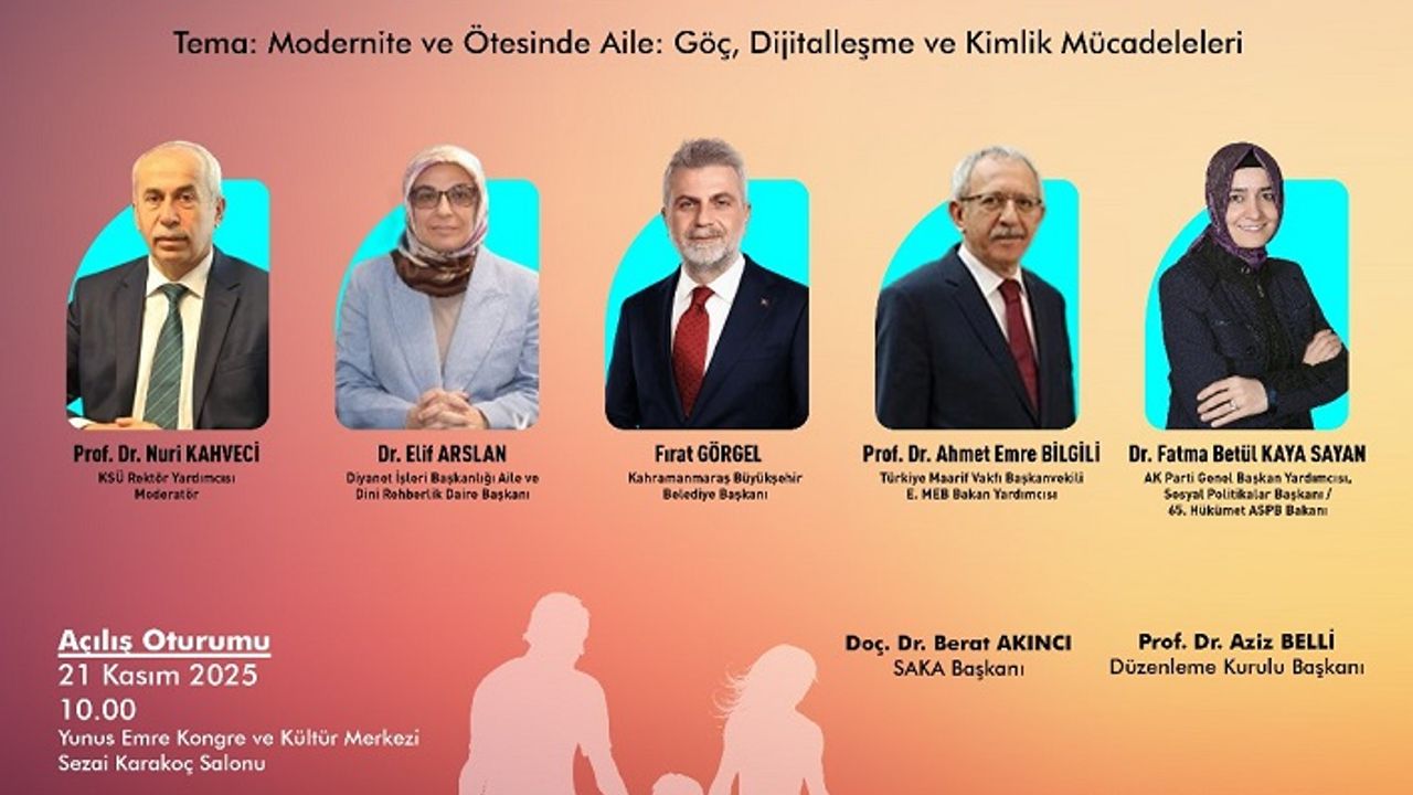 Kahramanmaraş Büyükşehir Belediyesi, 2025 Aile Yılı kapsamında aile kurumunun güçlendirilmesi ve toplumsal farkındalığın artırılması amacıyla yürüttüğü çalışmalara bir yenisini daha ekliyor. Bu çerçevede, Kahramanmaraş Sütçü İmam Üniversitesi ve Stratejik Araştırmalar ve Akademisyenler Derneği (SAKA) öncülüğünde düzenlenecek “Modernite ve Ötesinde Aile: Göç, Dijitalleşme ve Kimlik Mücadeleleri” temalı 3. Uluslararası Sosyal ve Beşerî Bilimler Akademisi Kongresi, birbirinden değerli isimleri vatandaşlarla buluşturacak. Kongrenin açılış programı, 21 Kasım Cuma günü KSÜ Yunus Emre Kongre ve Kültür Merkezi Sezai Karakoç Salonu’nda gerçekleştirilecek. Saat 10.00’da başlayacak açılış oturumunun moderatörlüğünü KSÜ Rektör Yardımcısı Prof. Dr. Nuri Kahveci üstlenecek. Açılışta Büyükşehir Belediye Başkanı Fırat Görgel’in yanı sıra; AK Parti Sosyal Politikalardan Sorumlu Genel Başkan Yardımcısı Dr. Fatma Betül Sayan Kaya, Diyanet İşleri Başkanlığı Aile ve Dini Rehberlik Daire Başkanı Dr. Elif Arslan, Türkiye Maarif Vakfı Başkanvekili Prof. Dr. Ahmet Emre Bilgin, SAKA Başkanı Doç. Dr. Berat Akıncı ve Düzenleme Kurulu Başkanı Prof. Dr. Aziz Belli, katılımcılara hitap edecek.