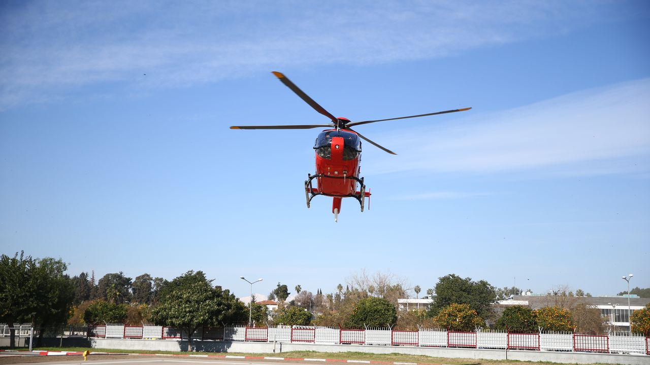 Sağlık Bakanlığının koordinesinde havalanan helikopterler, depremlerin büyük yıkıma neden olduğu çevre illerdeki yaralıları, Adana Şehir Eğitim ve Araştırma Hastanesi'ne taşıdı.