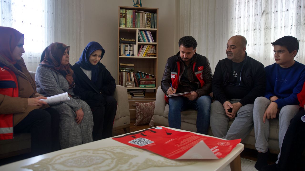 Hane ziyaretlerini aralıksız sürdüren ekipler, depremin izlerinin silinebilmesi için afetzedelerin yanında yer alıyor.