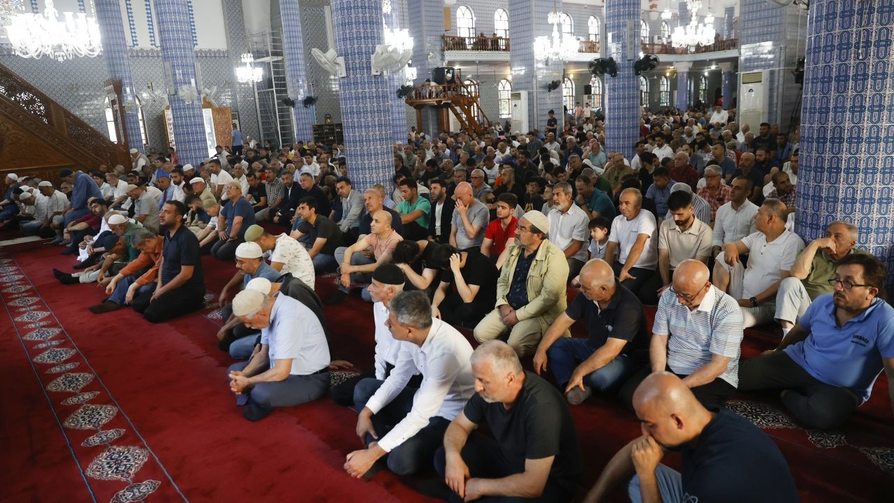 Kentte yaşayan çok sayıda kişi, namaz kılmak için Türkiye'nin en büyük camilerinden biri olan merkez Yenişehir ilçesindeki 6 minareli Muğdat Camisi'ne geldi.