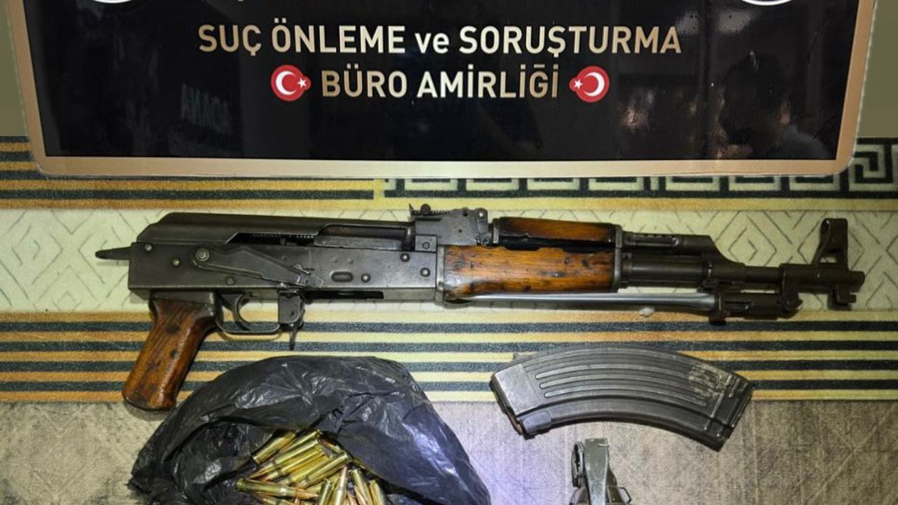 Adresteki incelemede ruhsatsız tabanca ve Kalaşnikof piyade tüfeği, el bombası ile 47 mermi bulundu.