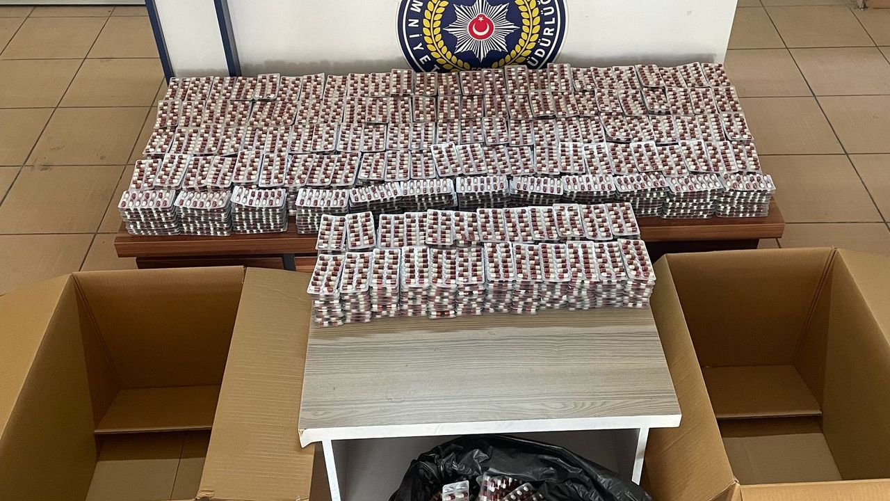 Araçtaki kutu ve poşette 34 bin 176 sentetik hap bulan ekipler, sürücüyü gözaltına aldı.