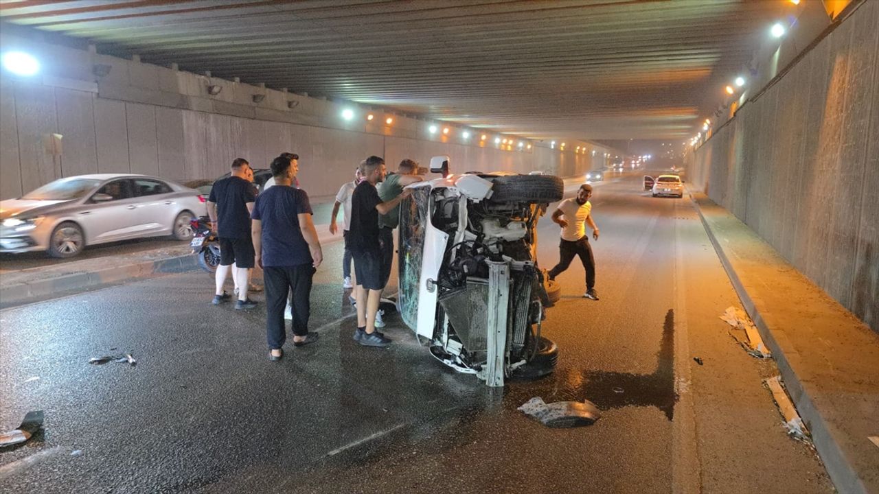 Sürücüsünün kimliği henüz belirlenemeyen 01 AYL 194 plakalı hafif ticari araç, Turhan Cemal Beriker Bulvarı'nda kontrolden çıkarak alt geçit duvarına çarptı.