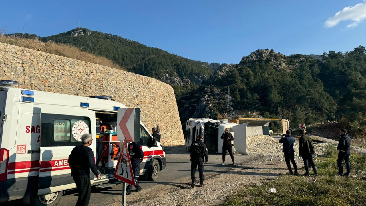 Selçuk Y. idaresindeki 33 DLD 23 plakalı maden yüklü kamyon, Kocayurdan Mahallesi'nde devrildi.
