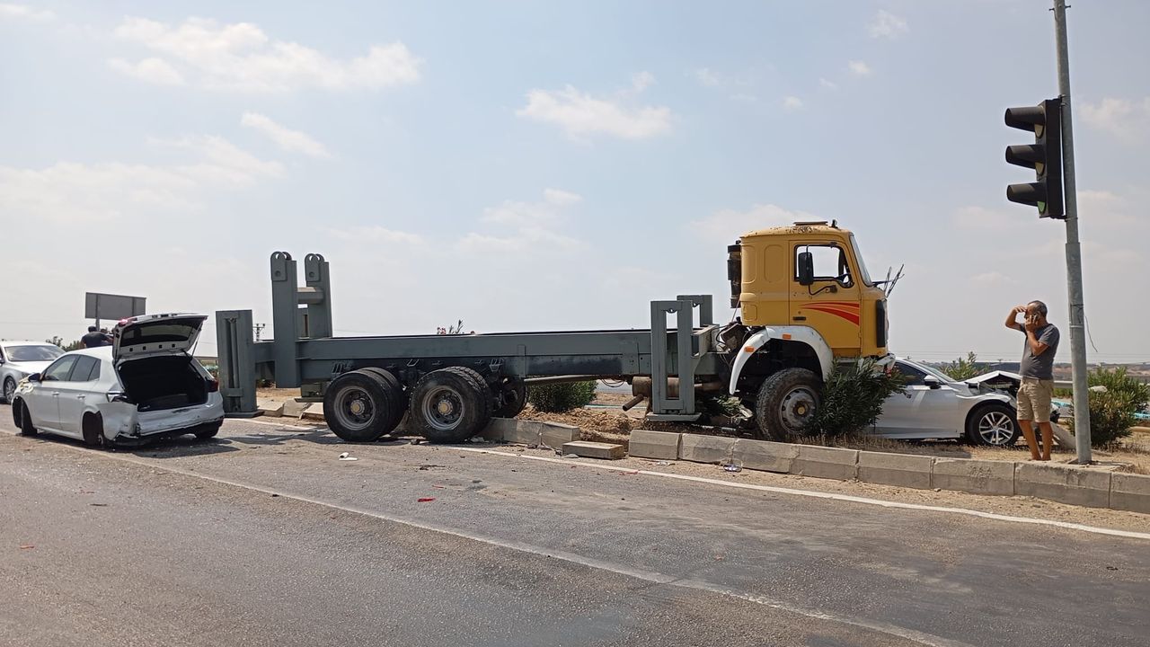 K.K. yönetimindeki kamyon, İmamoğlu ilçesinde trafik ışıklarında bekleyen 3 otomobile çarptı.