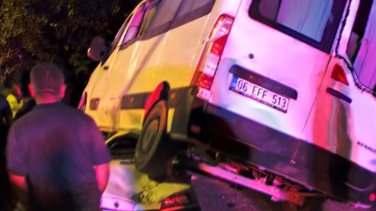 Karacaoğlan Mahallesi'nde park halindeki 06 EFF 513 plakalı minibüs, henüz bilinmeyen nedenle hareket edip yolun yaklaşık 10 metre aşağısındaki otomobilin üzerine düştü.