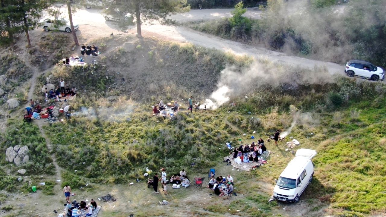 Ekipler, termal kameranın bulunduğu dronla mangal ateşinin yakıldığı alanları belirleyip cihaz üzerindeki ses sistemiyle piknikçilere şu ikazlarda bulundu: