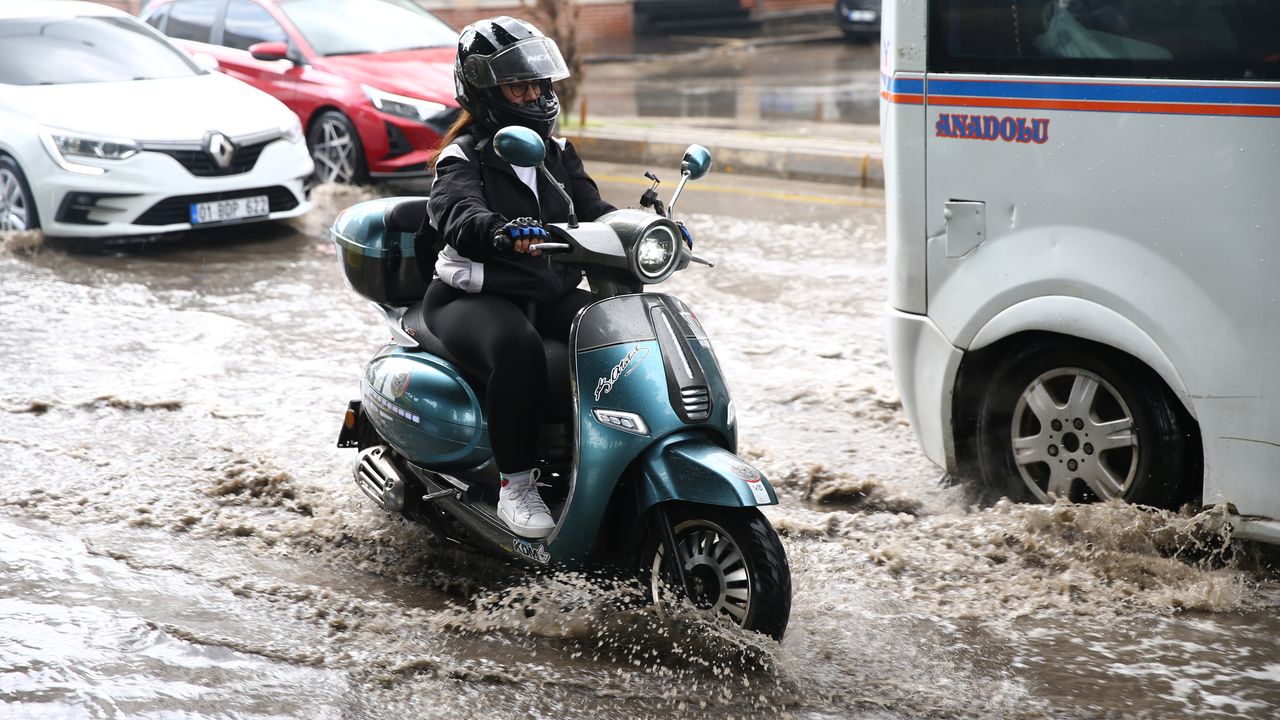 ADANA (AA) - Adana'da etkili olan sağanak nedeniyle bazı cadde ve sokaklarda su birikintileri oluştu.