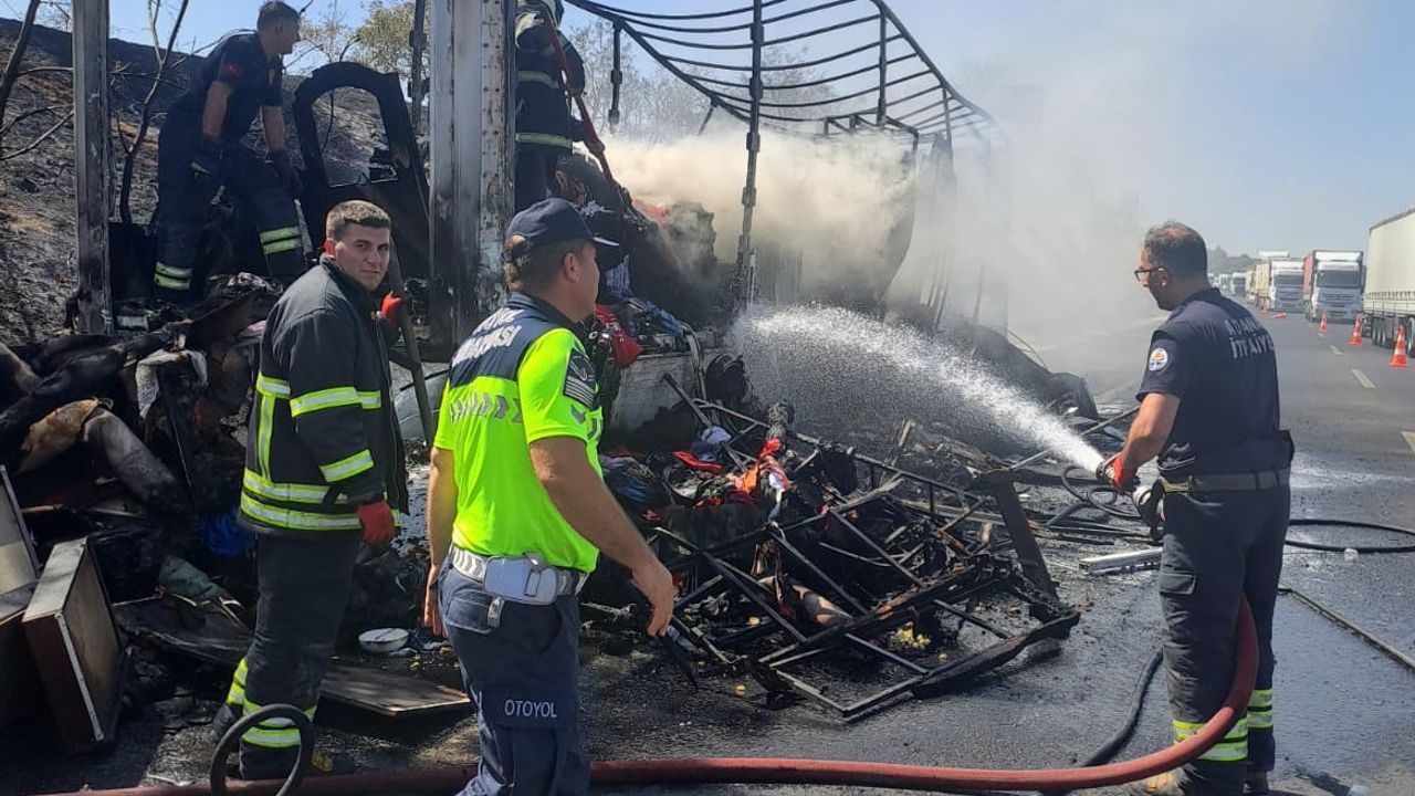 ADANA (AA) - Adana'da otoyolda bir tırın dorsesinde çıkan yangın söndürüldü.