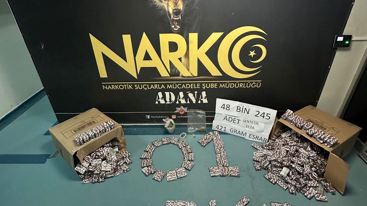 Adreslerdeki aramalarda 179 bin 663 uyuşturucu etkili hap, 500 gram esrar ve 39 gram sentetik uyuşturucu bulundu.