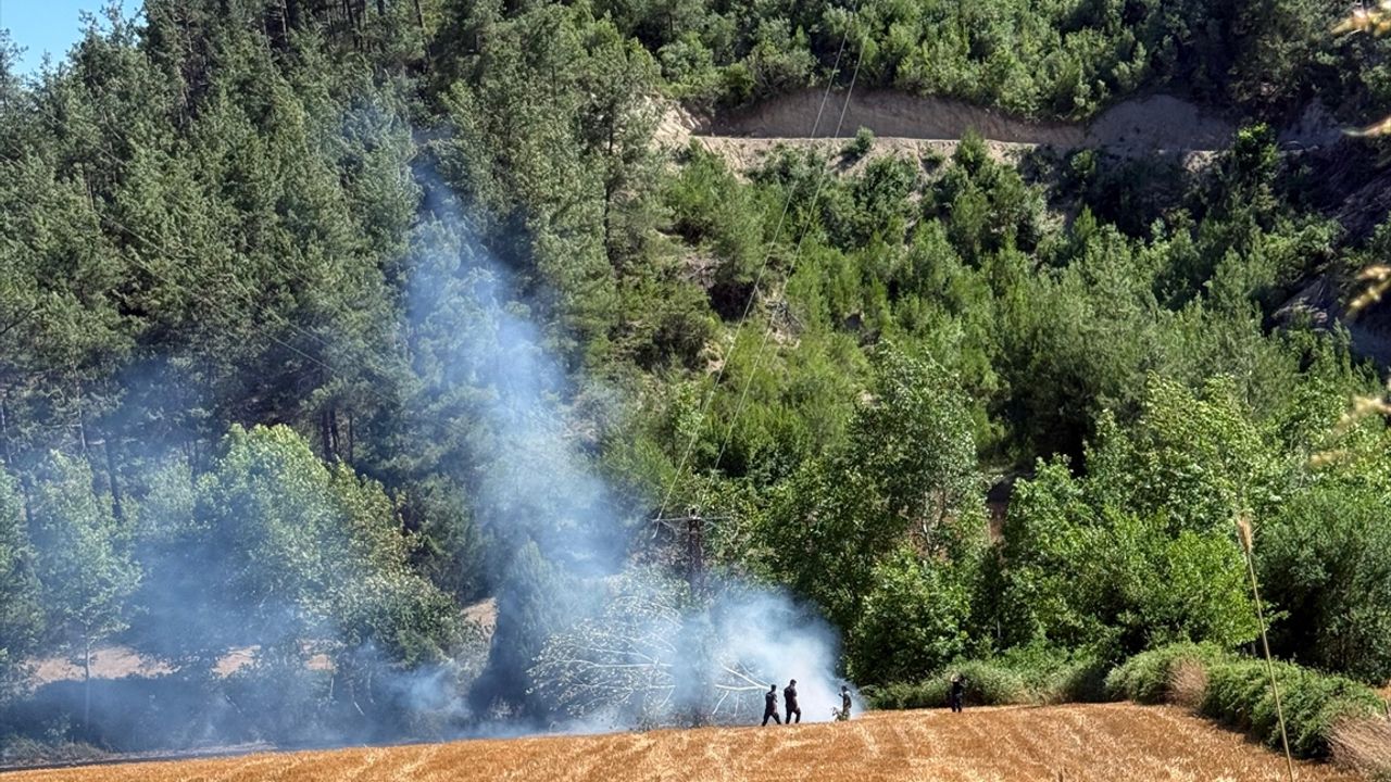 Tellerden yayılan kıvılcımlar nedeniyle ormanlık alanda yangın çıktı.