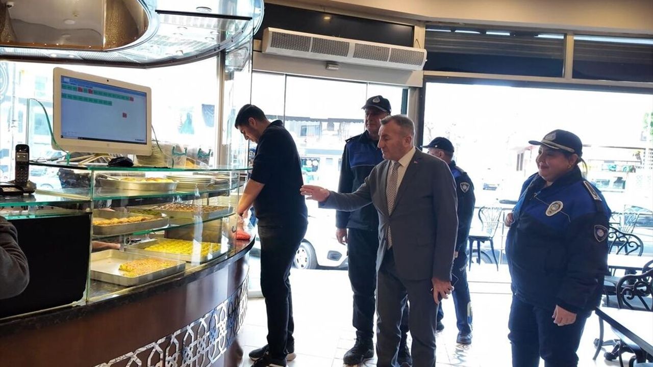 Tatlıcılardaki hijyen koşulları ve ürünlerin fiyat etiketlerini inceleyen ekipler, tespit ettikleri eksikler hakkında işletme sahiplerini bilgilendirdi.
