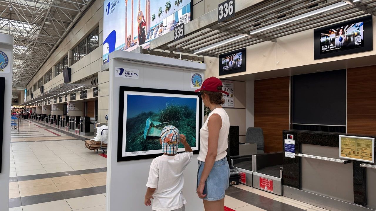 Fraport TAV Antalya Havalimanı İç Hatlar Terminali'nin ev sahipliği yaptığı sergide Kaş ve Belek kıyılarındaki caretta caretta, yeşil deniz kaplumbağası ve Akdeniz'e özgü deniz çayırları gibi pek çok hassas türün fotoğrafları yer aldı.