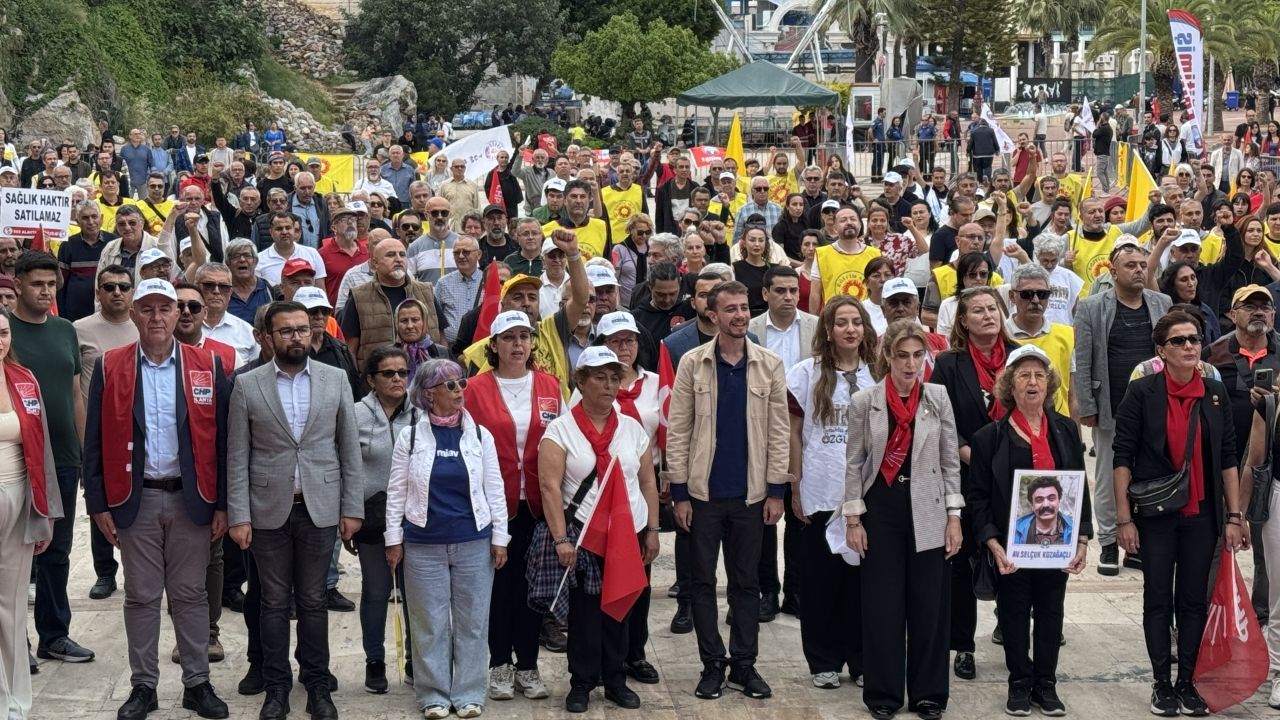 Kuyularönü Camisi mevkisinde toplanan bazı sendika ve sivil toplum kuruluşları üyeleri, slogan atarak İskele Caddesi'nden Şelale Meydanı'na yürüdü.