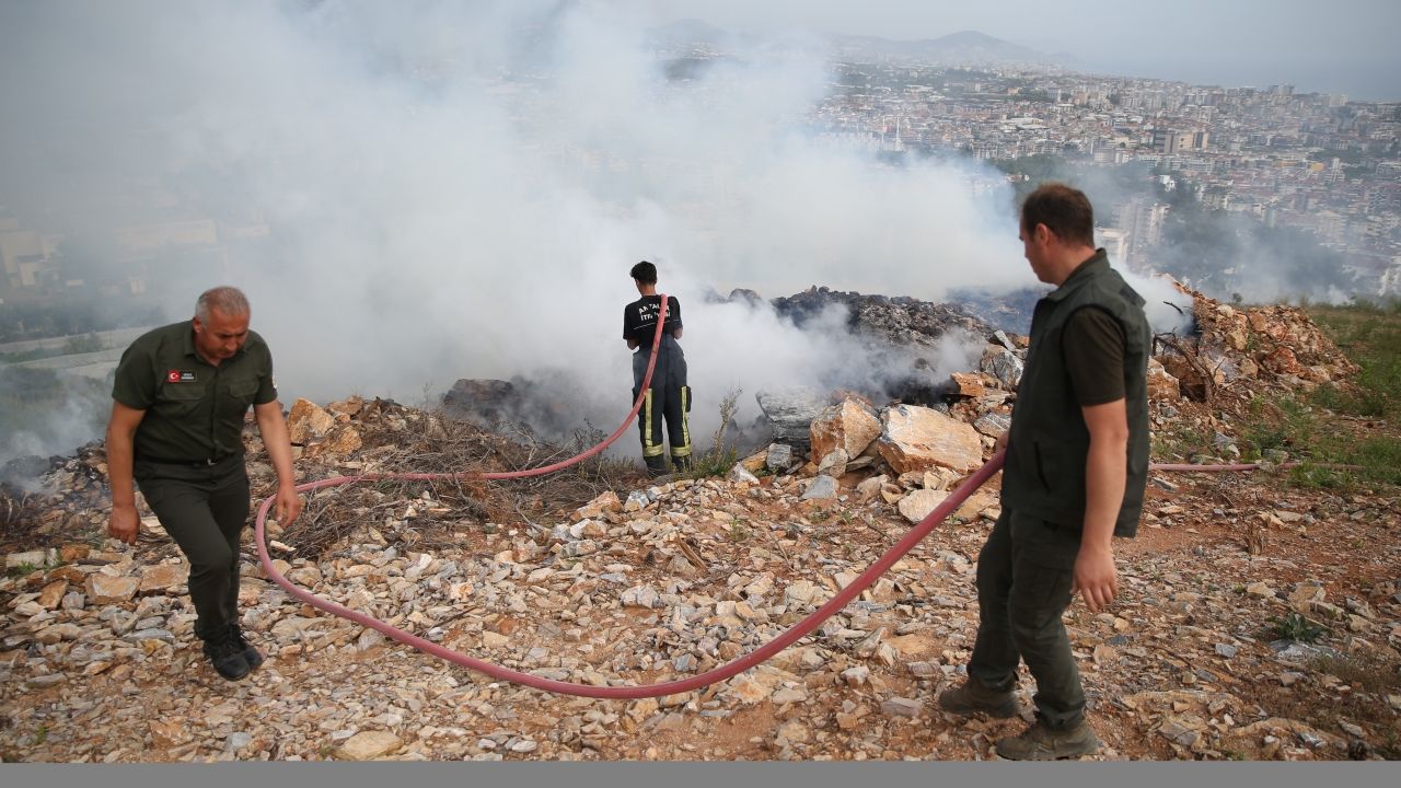 Alanya Alaaddin Keykubat Üniversitesine tahsis edilen Cikcilli Mahallesi Taşbaşı Sokak'taki arazide duman yükseldiğini görenler, durumu yetkililere bildirdi.