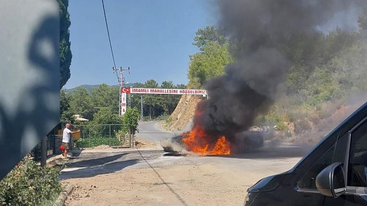 Sürücüsü öğrenilemeyen otomobil, seyir halindeyken İmamlı Mahallesi'nde belirlenemeyen nedenle yanmaya başladı.
