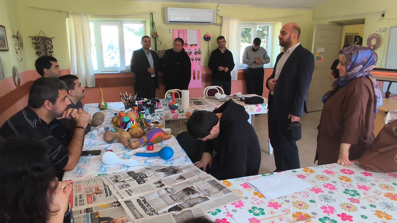 Merkezde engelli bireylerle bir araya gelen Fidan, yapılan çalışmaları inceledi.