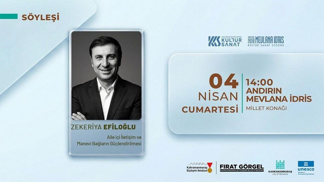 4 Nisan Cumartesi günü Andırın Mevlana İdris Millet Konağı’nda yazar Zekeriya Efiloğlu’nun katılımı ile “Aile İçi İletişim ve Manevi Bağların Güçlendirilmesi” adlı söyleşi programı düzenlenecek. Yazar Zekeriya Efiloğlu’nun konuşmacı olarak katılacağı “Aile İçi İletişim ve Manevi Bağların Güçlendirilmesi” başlıklı söyleşi, aile yapısının korunması ve güçlendirilmesi üzerine kapsamlı değerlendirmeler sunacak. Efiloğlu, ailenin toplumdaki yeri, temel değerlerin korunması, kuşaklar arası bağların güçlendirilmesi ve sağlıklı bir toplumun inşasında ailenin rolü gibi konuları ele alacak. Farklı bakış açılarıyla zenginleşecek söyleşide, aile içi iletişimde dikkat edilmesi gereken noktalar da örneklerle aktarılacak. Katılımcılar, özellikle ebeveyn ve çocuk arasındaki iletişimin nasıl daha sağlıklı kurulabileceği, aile bireyleri arasındaki bağların nasıl güçlendirilebileceği ve toplumsal dayanışmanın hangi değerler üzerinden yeniden inşa edilebileceği gibi konularda detaylı bilgiler edinme fırsatı bulacak. Söyleşi, aynı zamanda aile içindeki sevgi, saygı ve anlayışın toplumsal huzura olan katkısına da ışık tutacak. Büyükşehir Belediyesinden yapılan açıklamada, programa tüm vatandaşların davetli olduğu belirtildi.