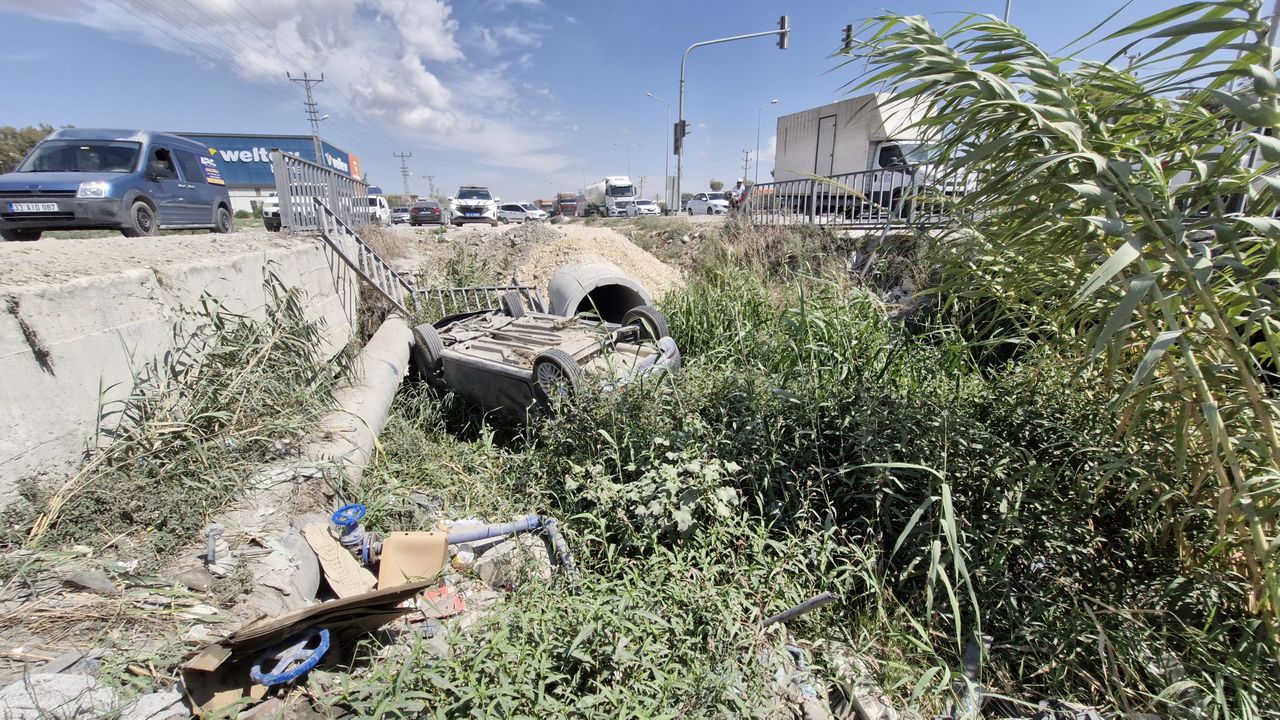 Çarpmanın etkisiyle su kanalına devrilen otomobildeki 2 kişi yaralandı.