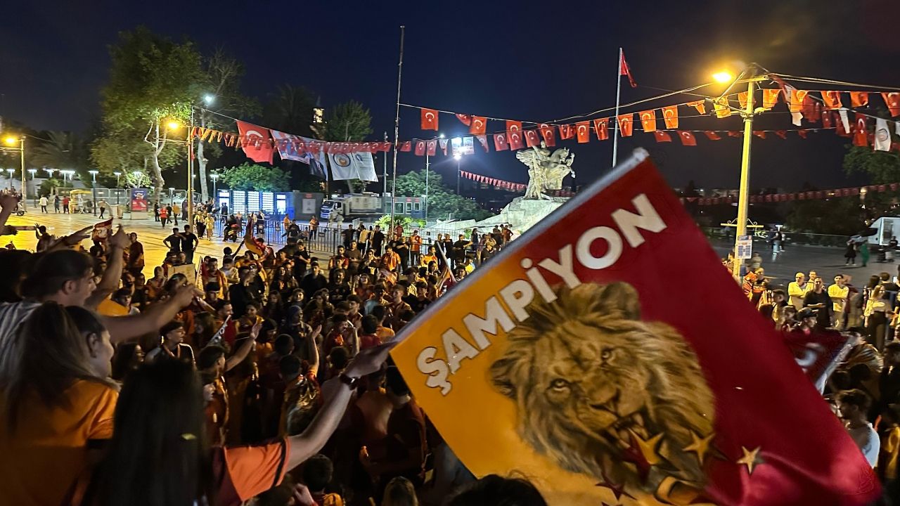 Bodrum ilçesinde araç konvoyu ile Belediye Meydanı'na gelen sarı kırmızılar, Galatasaray bayraklarıyla tezahürat yaptı. Taraftar, meşale yakıp şampiyonluk marşları söyledi.