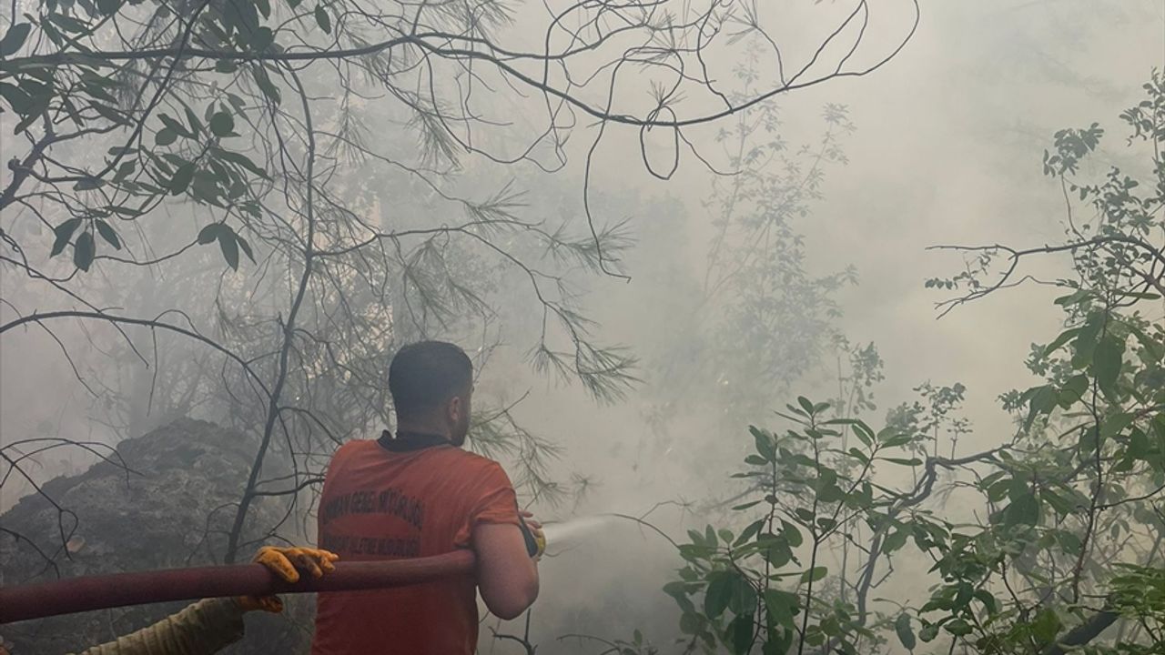 İhbarın ardından olay yerine ulaşan Manavgat Orman İşletme Müdürlüğü ekipleri yangına müdahale etti.