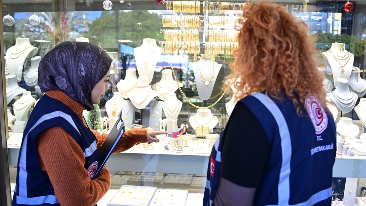 Bu kapsamda Antalya Ticaret İl Müdür Vekili Sebahat Akdoğan ile beraberindekiler, Altınkum Mahallesi'ndeki bir kuyumcuda yetki belgesi denetimi yaptı.