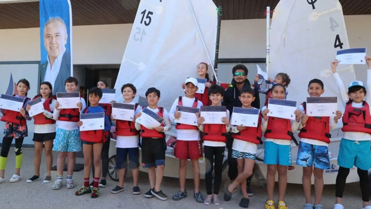 Antalya Büyükşehir Belediyesi’nin ilk kez düzenlediği “Temel Yelken Eğitimi” kursuna katılan minik yelkenciler başarı sertifikalarını aldı. Yelken sporculuğunun temel inceliklerini uygulamalı derslerle öğrenen çocuklar yelken sporunun geleceği olacak. ANTALYA (İGFA) - Antalya Büyükşehir Belediyesi Gençlik ve Spor Hizmetleri Daire Başkanlığı geleceğin sporcularını yetiştirmeye devam ediyor. Konyaaltı Varyant altında yer alan Antalya Yelken Kulübünde bu yıl ilk kez düzenlenen kurslara katılan 6-12 yaş arası 15 öğrenci, üç haftalık eğitimlerinin ardından başarı sertifikalarını düzenlenen törenle aldı. Türkiye Yelken Federasyonu onaylı Türk yelken eğitim programı D-1 başarı sertifikalarını alan minikler geleceğin yelken sporcusu olma yolunda ilk adımını attı. Miniklere deniz sevgisi ve yelken sporunun aşılanması sağlanan yelken kursunda teorik ve suda uygulamalı eğitimler verilerek yelkenciliğin temel ilkeleri öğretildi.