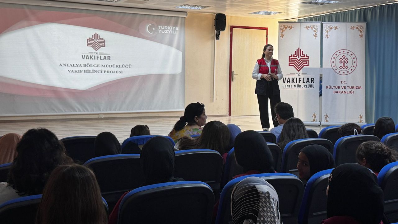 ANTALYA (AA) - Antalya Vakıflar Bölge Müdürlüğü vakıf kültürünün tanıtılması amacıyla öğrencilere, "Geçmişten Geleceğe Vakıf Bilinci" eğitimi verdi.