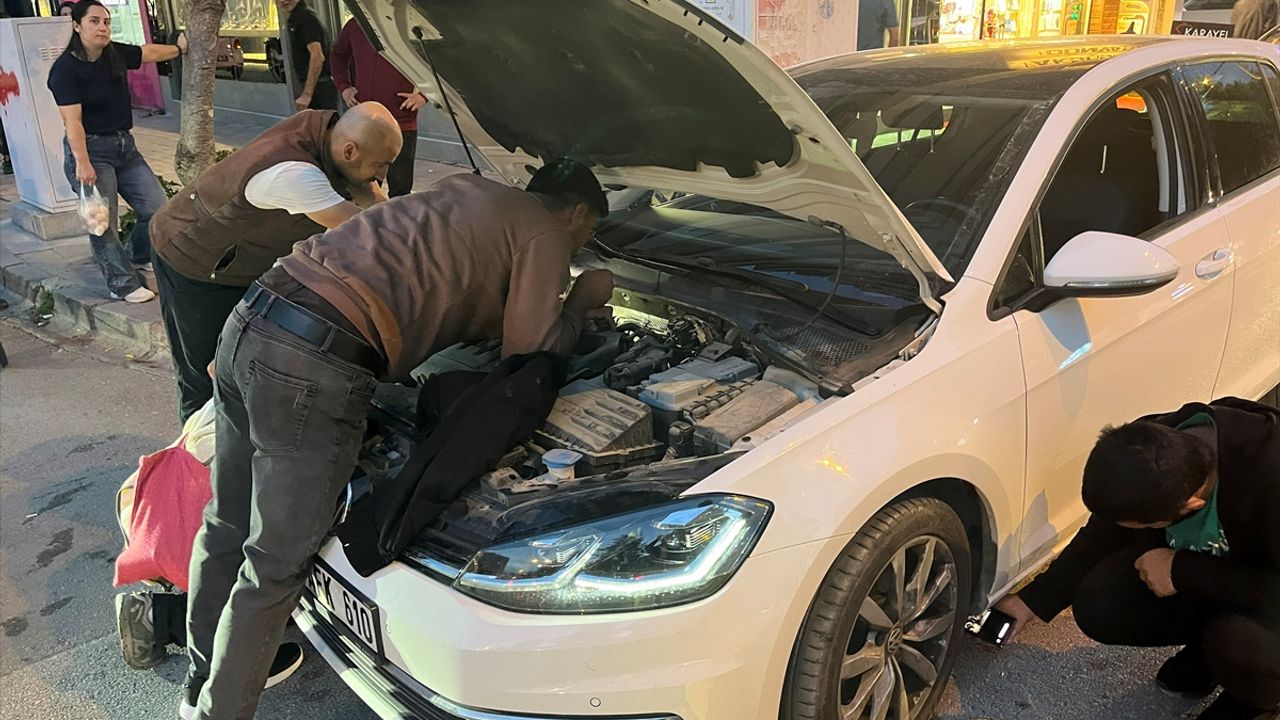Merkez Mahallesi'nde park halindeki otomobilin motor kısmından kedi sesi geldiğini duyan vatandaşlar, durumu araç sahibine ve polise bildirdi.