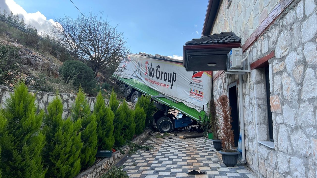 Bariyerleri aşarak şarampole devrilen tır, yolun yaklaşık 10 metre aşağısındaki eve çarparak durabildi.