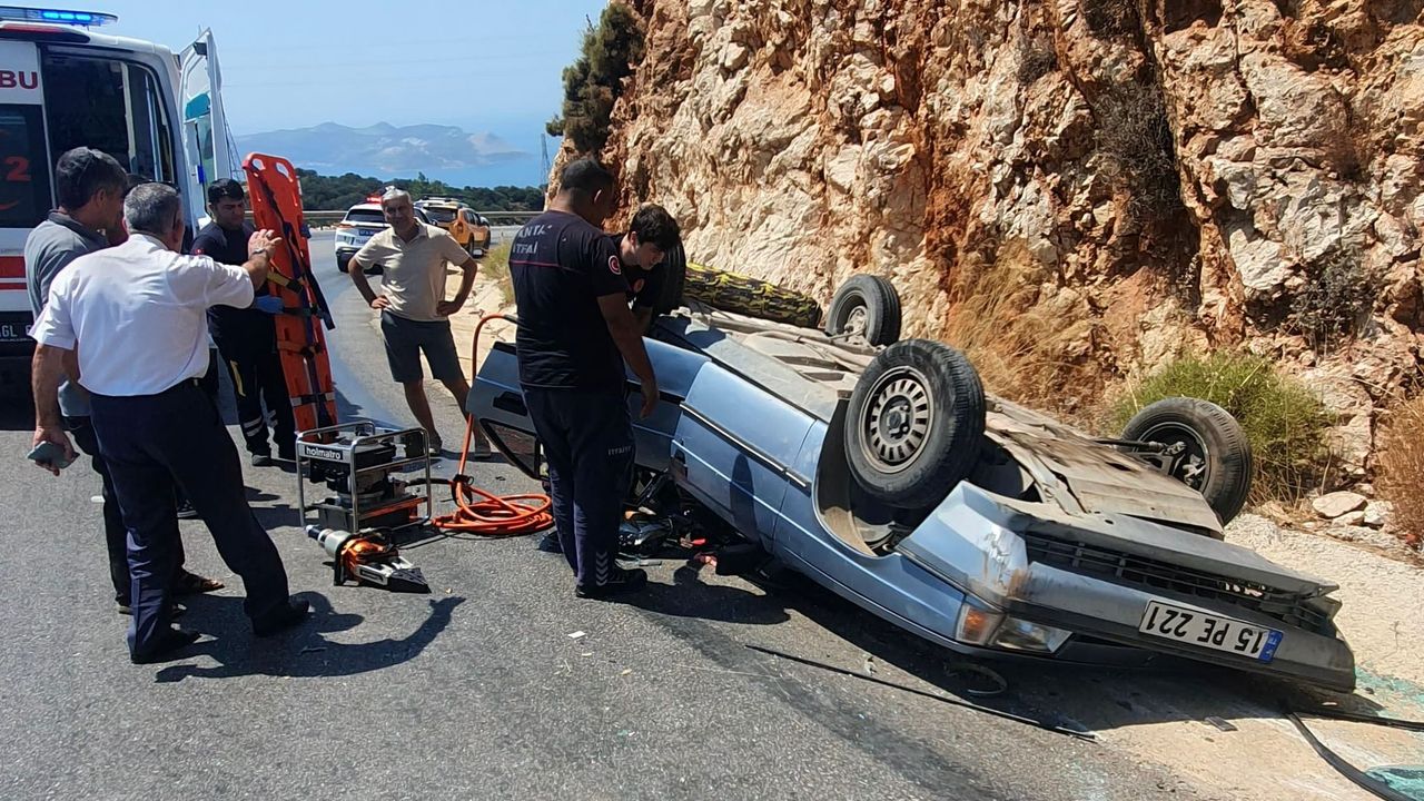 İlk müdahalesi kaza yerinde yapılan yaralı sürücü Mehmet D. ve yolcu Sevim D. sağlık ekipleri tarafından ambulanslarla Kaş Devlet Hastanesi'ne kaldırıldı.