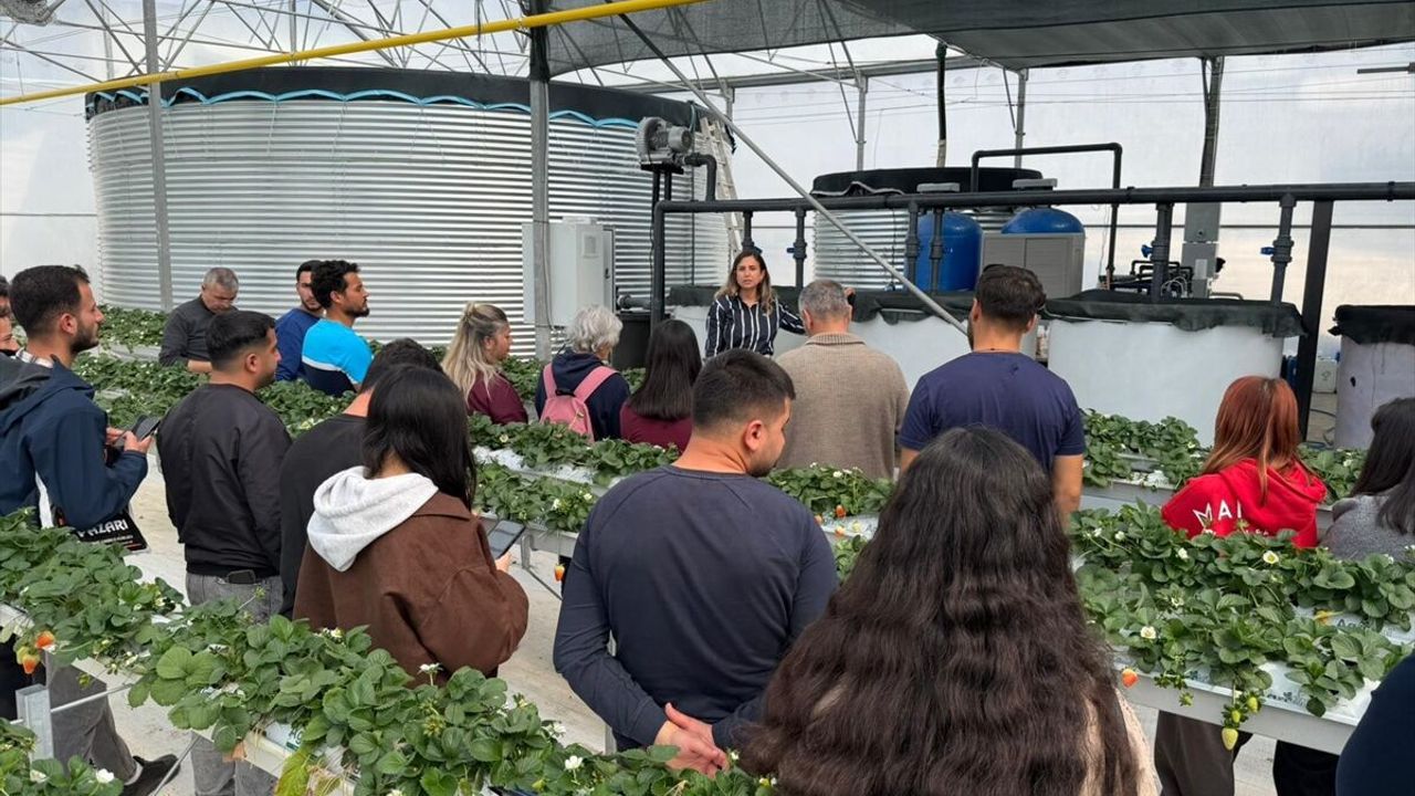 ANTALYA (AA) - Antalya'da Yonca ve Ersan Kotiloğlu çifti, Kumluca ilçesinde 18 bin dekar alana kurdukları çilek üretim tesisinde üniversite öğrencilerine topraksız tarımın avantajlarına ilişkin bilgi veriyor.