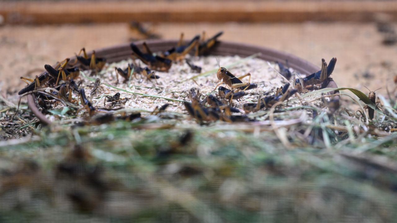 Çekirgeler için 450 kafesin bulunduğunu belirten Gökgöl, 'Çekirge her türlü canlı için temel gıdadır. Protein oranı çok yüksektir. Her türlü canlı bunu tüketebilir. Bu çekirgeler doğada bildiğimiz çekirgeler gibi çok zıplayan, sağa sola kaçan, yakalaması zor olan canlılar değildir.' dedi.