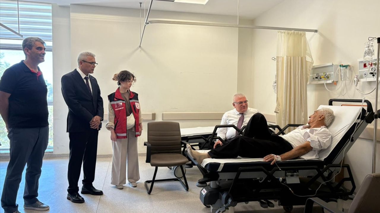 Kumluca Kaymakamı Bahadır Güneş, Gazi Gökmen'i hastanede ziyaret etti.