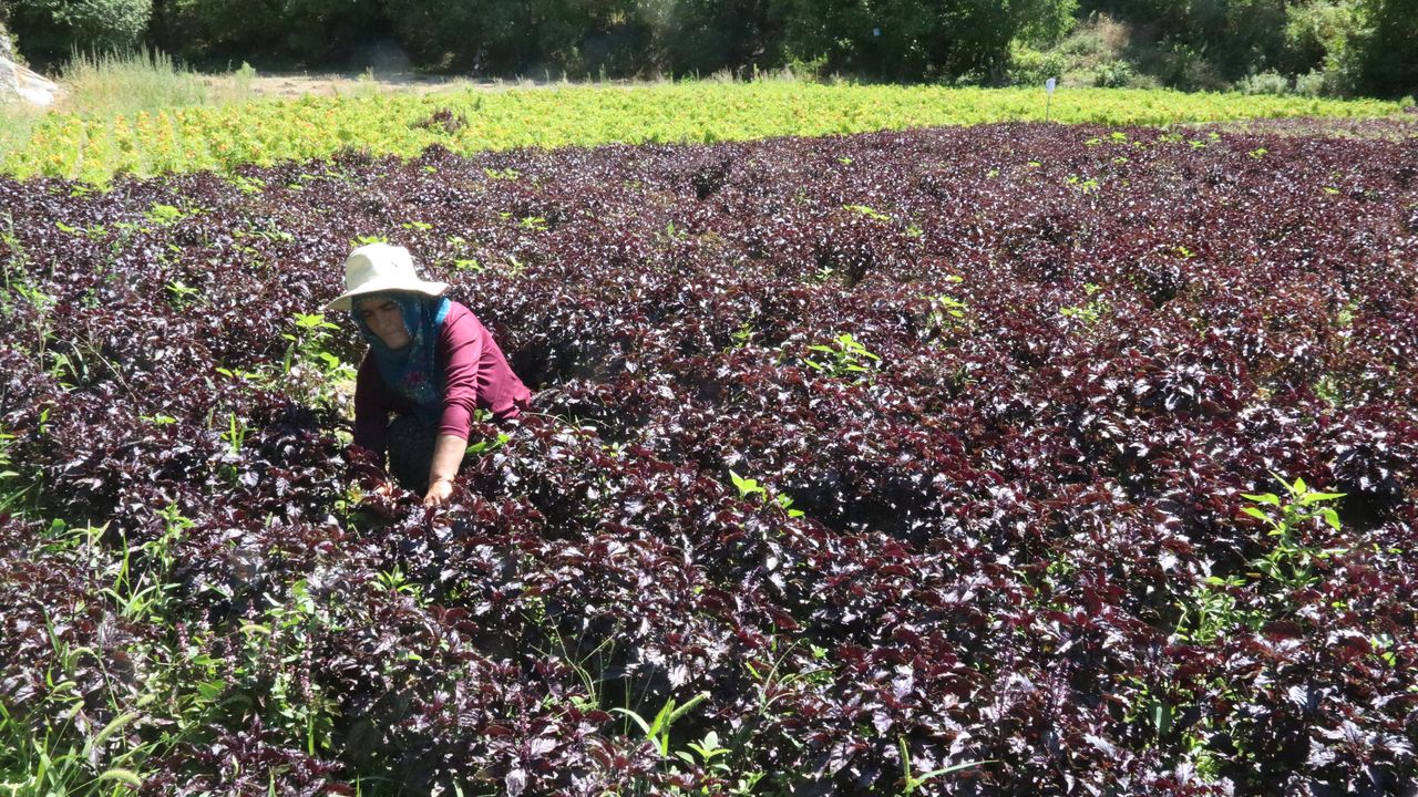 11 yıldır Arapgir mor reyhanı yetiştiren Necla Karakaya, AA muhabirine, bu yıl üçüncü hasadı yaptıklarını, verimin çok iyi olduğunu belirtti.