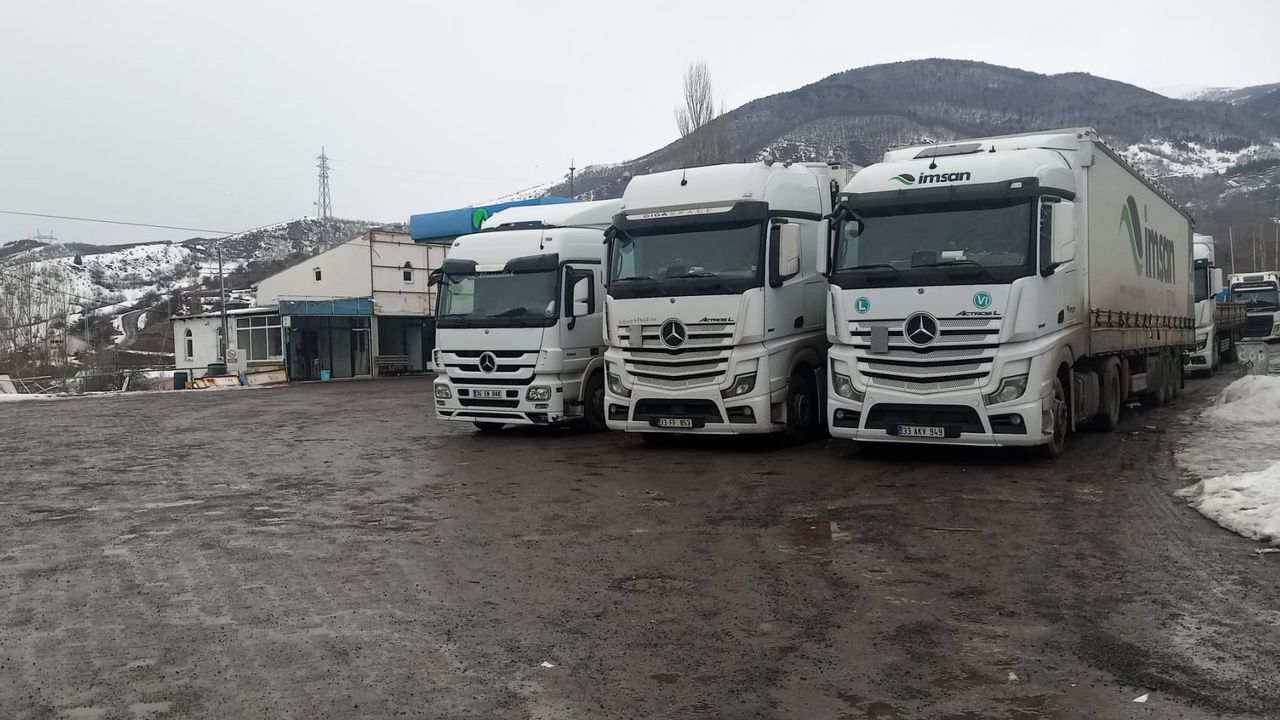 ARDAHAN (AA) - Ardahan'da Türkgözü-Posof-Damal kara yolunda, kar ve tipi nedeniyle tırların geçişine izin verilmiyor.