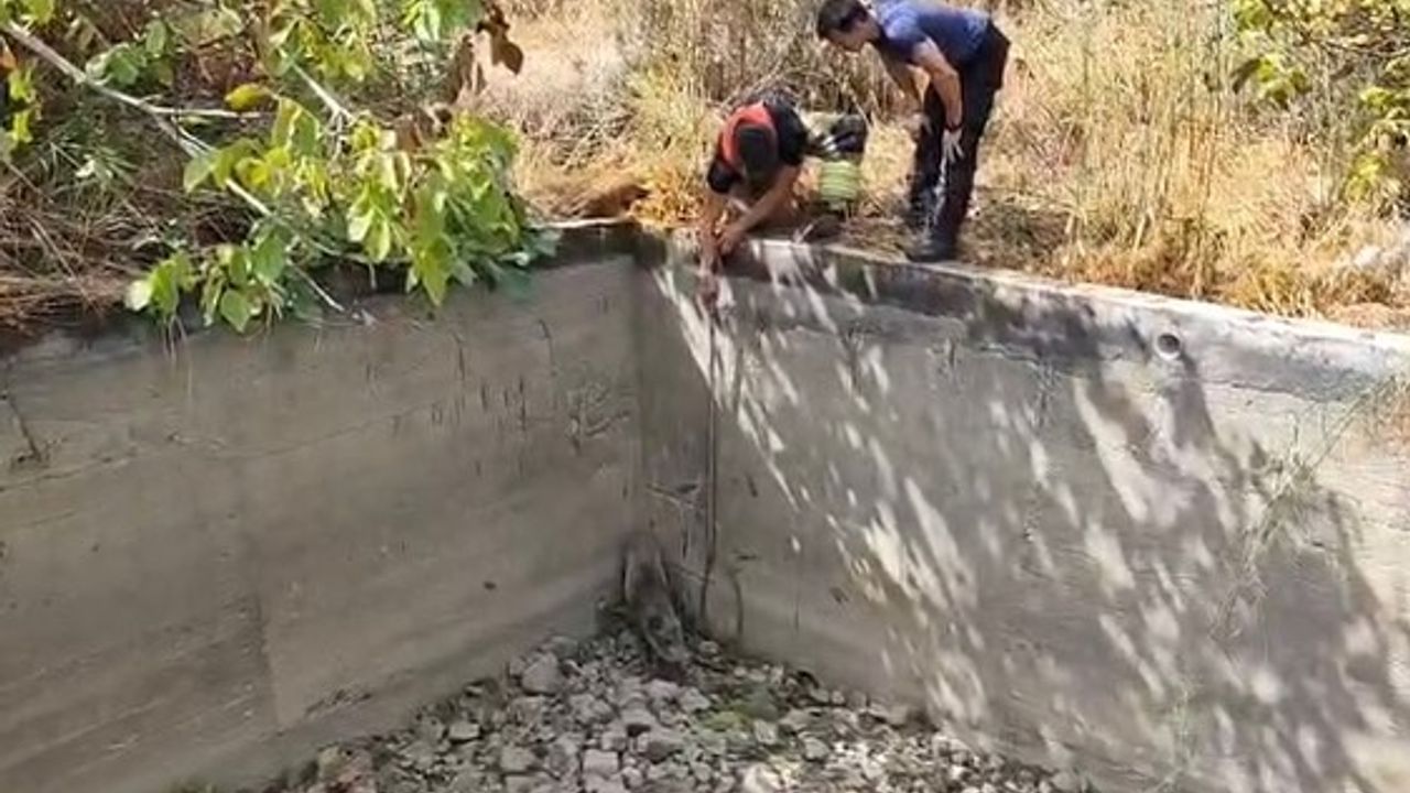 HATAY (AA) - Hatay'ın Arsuz ilçesinde boş sulama havuzuna düşen domuz, itfaiye ekibince kurtarıldı.