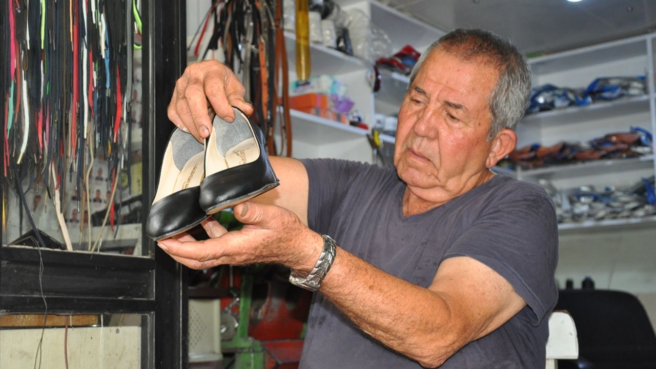 MERSİN (AA) - MURAT PANCAR - Mersin'in Silifke ilçesinde 73 yaşındaki ayakkabı imalatçısı ve tamircisi Mehmet Evlice, babasının yanında çıraklığa başladığı dükkanda 64 yıldır mesleğini sürdürüyor.