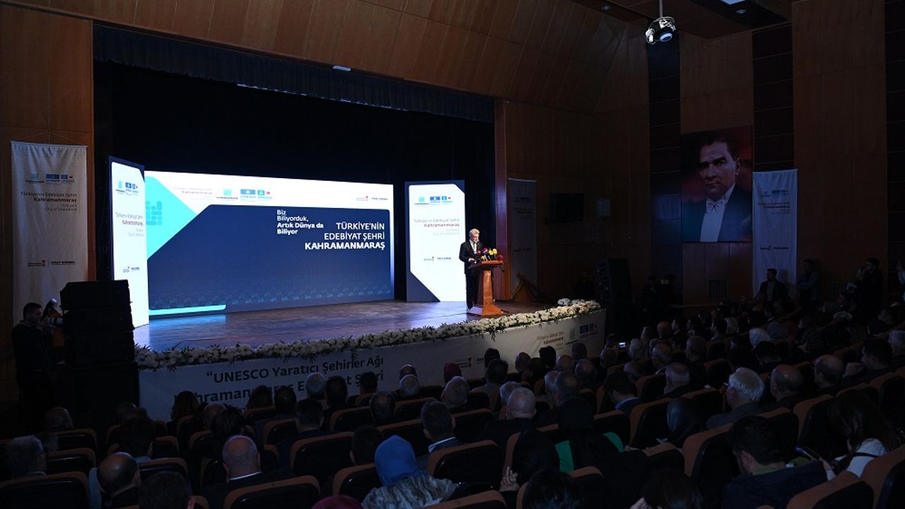 Saygı duruşu ve İstiklal Marşı’nın okunmasıyla başlayan programın açılış konuşmasını yapan UNESCO Türkiye Milli Komisyonu Yönetim Kurulu Üyesi Prof. Dr. Öcal Oğuz, “Kahramanmaraş Büyükşehir Belediyesi, uzun zamandır bu mutlu sonuca ulaşmak için danışmanlarıyla, akademisyenleriyle, uzmanlarıyla ve halkıyla çok çaba harcadı. Şimdi ise emeklerinin karşılığını aldılar. Kahramanmaraş, Anadolu şehirlerinin UNESCO Yaratıcı Şehirler Ağı sürecine öncülük edecek. Kahramanmaraş almış olduğu bu bayrağı çok daha ileriye taşıyacaktır. Yazılı ve sözlü edebiyatın en güzel örnekleri verilmeye devam edecek burada. Bu çalışmalarla Kahramanmaraş’ın uluslararası alandaki görünürlüğü de daha da artacak. Edebiyat bu şehre katkı verecek” dedi.