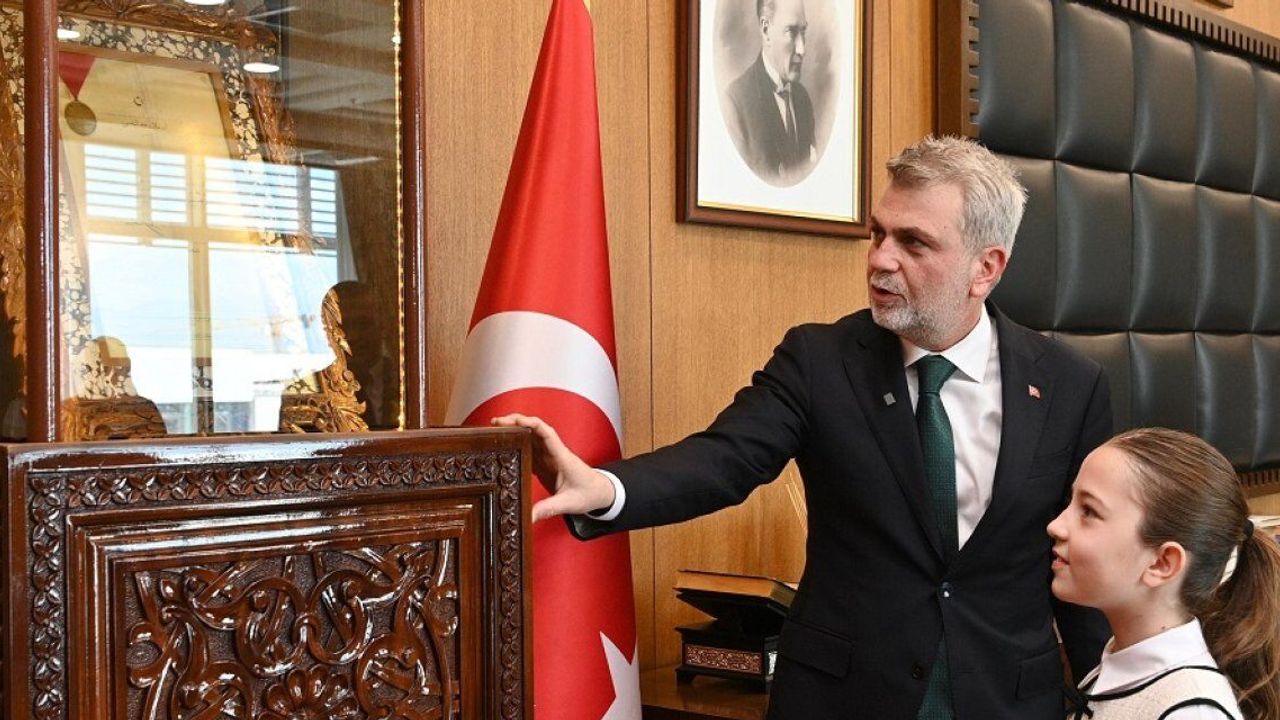Temsili devir teslim töreni, bayramın ruhuna yakışır şekilde samimi ve renkli görüntülere sahne oldu. Minik başkan Erva Zehra Boyraz’a teslim töreninde; kuzeni özel gereksinimli şampiyon yüzücü Sertaç Tahsin Boyraz, okul müdürü Duran Gül ve öğretmenleri de eşlik etti. Tören boyunca heyecanı gözlerinden okunan Erva Zehra Boyraz, başkanlık makamında oturarak hem duygu ve düşüncelerini paylaştı hem de çocukların beklentilerine yönelik mesajlar verdi. Programda konuşan Büyükşehir Belediye Başkanı Fırat Görgel, 23 Nisan’ın sadece bir bayram değil, aynı zamanda çocuklara verilen değerin ve duyulan güvenin en önemli göstergelerinden biri olduğunu vurguladı. Görgel, geleceğin teminatı olan çocukların daha güçlü, bilinçli ve donanımlı bireyler olarak yetişmesi için tüm imkânların seferber edildiğini ifade etti. Temsili başkan Erva Zehra Boyraz ise böyle anlamlı bir günde Büyükşehir Belediye Başkanı olmanın gururunu yaşadığını belirterek, kendisine bu fırsatı sunan Başkan Görgel’e teşekkür etti.