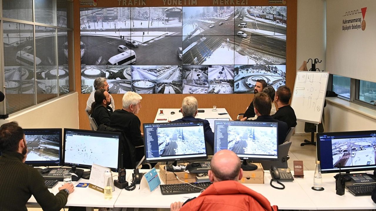 Kahramanmaraş Büyükşehir Belediyesi, bugün öğle saatlerinden itibaren şehir genelinde etkili olan yoğun kar yağışının ulaşımda aksamalara neden olmaması ve vatandaşların günlük yaşamının olumsuz etkilenmemesi için kış şartlarıyla mücadelesini aralıksız sürdürüyor. Büyükşehir Belediyesi, tüm birimleriyle sahada ve koordinasyon merkezlerinde çalışmalarını yoğunlaştırmış durumda. Büyükşehir Belediye Başkanı Fırat Görgel, yürütülen çalışmaları yerinde takip etmek amacıyla Trafik Yönetim Merkezi’ni ziyaret ederek şehir genelindeki son durumu anbean inceledi. Başkan Görgel, merkezde bulunan 264 kameradan şehir merkezi ve 11 ilçedeki ana arterler, bulvarlar, kavşaklar, cadde ve sokaklardaki yol durumunu canlı olarak izledi. Ulaşım Dairesi Başkanı Gökhan Başpınar’dan detaylı bilgiler alan Başkan Görgel; kar küreme, tuzlama ve solüsyon uygulamalarının sürdürüldüğü noktalar, yağışın yoğunlaştığı bölgeler ve trafik akışının yavaşladığı güzergâhlar hakkında kapsamlı değerlendirmelerde bulundu.