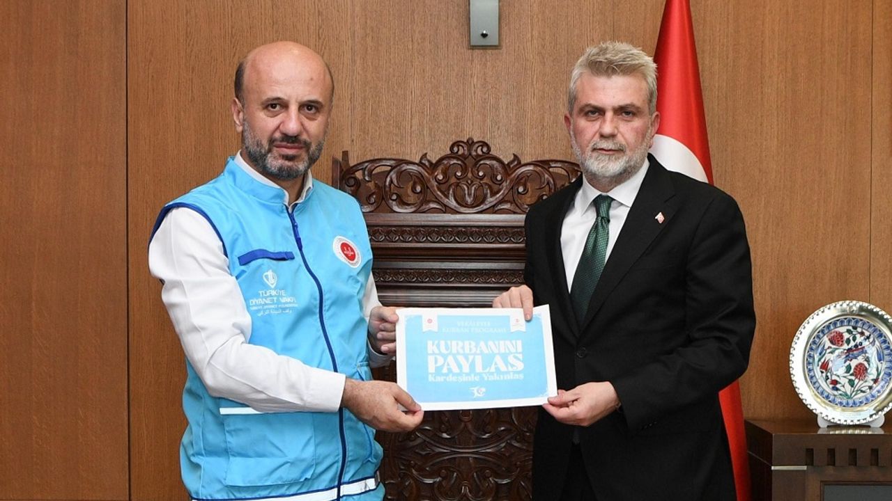 Kahramanmaraş Büyükşehir Belediye Başkanı Fırat Görgel, Türkiye Diyanet Vakfının bu yıl “Kurbanını Paylaş, Kardeşinle Yakınlaş” temasıyla gerçekleştirdiği vekâletle kurban organizasyonuna destek verdi. Başkan Görgel, anlamlı organizasyona kendisi ve eşi İlknur Görgel adına iki kurban bağışında bulundu. Kahramanmaraş İl Müftüsü Abdurrahman Kotan, Başkan Fırat Görgel’i makamında ziyaret ederek yapılan bağışlara ilişkin makbuzları takdim etti. Başkan Fırat Görgel, bu tür kampanyaların toplumsal dayanışma ve kardeşlik ruhunu pekiştirdiğine dikkat çekerek, “Türkiye Diyanet Vakfının sürdürdüğü bu çalışma dünyanın farklı coğrafyalarındaki kardeşlerimize ulaşma imkânı sunuyor. Böyle bir çalışmaya katkı sunmaktan büyük bir memnuniyet duyuyorum” ifadelerini kullandı. İl Müftüsü Abdurrahman Kotan ise Başkan Görgel’in duyarlılığından dolayı teşekkür ederek, “Vekâletle kurban bağışları sayesinde sadece ülkemizde değil, dünyanın dört bir yanındaki ihtiyaç sahiplerine ulaşabiliyoruz. Sayın Başkanımızın bu anlamlı desteği, mazlum coğrafyalarda birer umut ışığı olacaktır” dedi.