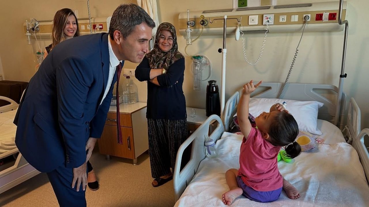 Kuruca, spina bifida ve hidrosefali hastalığıyla mücadele eden 5 yaşındaki Yağmur Çolak'ı da ziyaret ederek geçmiş olsun diledi.
