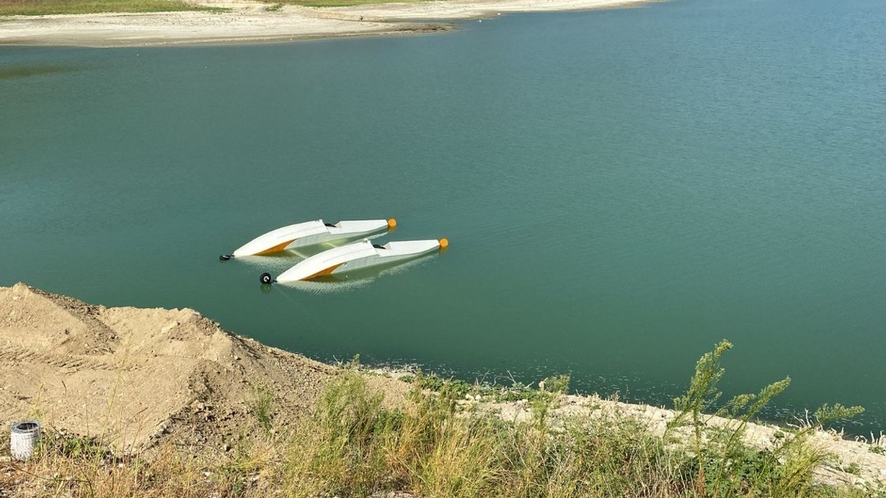 Elsazı köyü Karacaören Barajı Gölü'nde dün su alma sırasında kalkış yapamayan uçak kırıma uğramış, içerisindeki 2 pilot, bir çiftçi tarafından balıkçı tekneleriyle kurtarılmıştı.