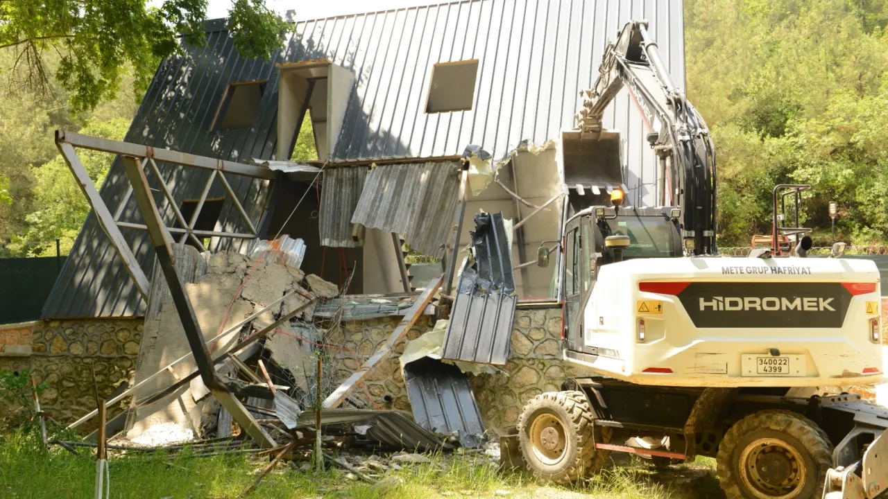 Zabıta ekiplerinin güvenlik önlemleri eşliğinde gerçekleştirilen yıkım çalışmasında, bin 900 metrekarelik arazi üzerine kurulu toplam 270 metrekarelik iki kaçak villa ile birlikte alandaki müştemilat da kullanılamaz hale getirildi.