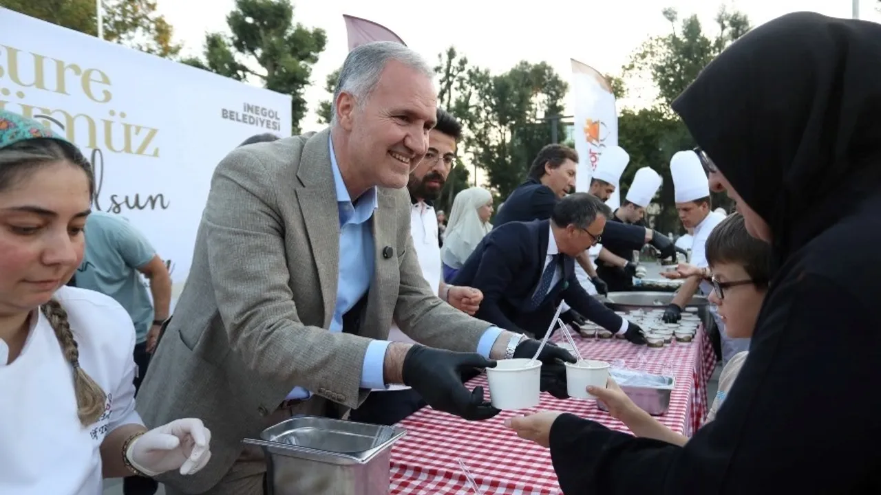 Alanda vatandaşlarla bir araya gelen İnegöl Belediye Başkanı Alper Taban, aşurenin anlamına ve Muharrem Ayı'nın maneviyatına vurgu yaptı. Başkan Alper Taban konuşmasında, “Şehadetlerinin 1386. yılında Kerbela da şehit düşen Hz. Hüseyin Efendimizi ve tüm Kerbela şehitlerini ve vatanı uğruna kahramanca savaşan tüm şehitlerimizi rahmetle anıyoruz. Aşure Günü birlik, dayanışma ve kardeşlik günüdür. Aşure ise bu birlikteliğin tatlı bir simgesidir. Nasıl ki farklı tatlar bir araya gelerek aşureyi oluşturuyorsa İnegöl’ümüz de 81 vilayetten, Balkanlardan, Kafkaslardan ve dünyanın dört bir yanından gelen vatandaşlarımızla huzur içinde yaşayan örnek bir şehir. Devletimiz, tüm mazlum coğrafyalara el uzatmaya devam ediyor. Filistin ve Gazze’deki kardeşlerimiz için de dua ediyor, barış ve özgürlük diliyoruz.” dedi.
