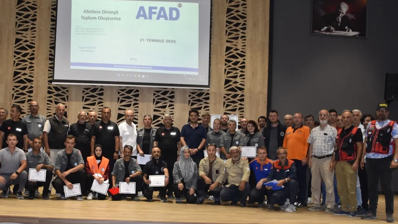 Bursa'da Karacabey Belediyesi, AFAD ve KUMDAK iş birliğiyle düzenlenen Afet Bilinçlendirme Eğitim Programı’nda gönüllülere sertifikalar verildi, deprem farkındalığı için simülasyon tırı etkinliği yapıldı.BURSA (İGFA) - Karacabey Belediyesi, Bursa İl Afet ve Acil Durum Müdürlüğü (AFAD) ve Karacabey Kum Tanesi Derneği Arama Kurtarma (KUMDAK) iş birliğiyle, Ergün Koç Kültür Merkezi’nde Afet Bilinçlendirme Eğitim Programı ve Sertifika Töreni düzenledi.