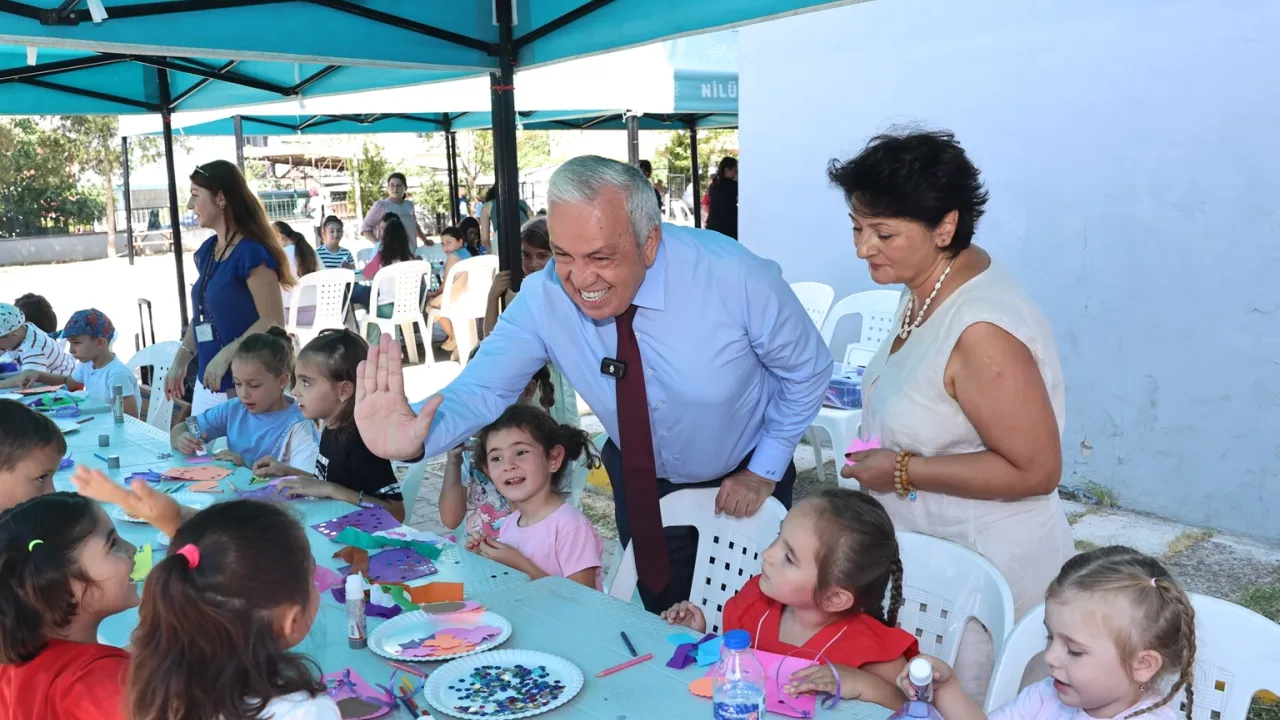 Ardından “Çocuk Akademisi Yaz Atölyesi” standına geçen Başkan Şadi Özdemir, çanta baskı, maske yapımı ve İngilizce atölyelerindeki çocuklarla bir araya geldi. Atölyeleri ve oyun alanlarını gezerek çocuklarla tek tek ilgilenen Başkan Şadi Özdemir, onların yaratıcı çalışmalarını inceledi ve neşelerine ortak oldu.