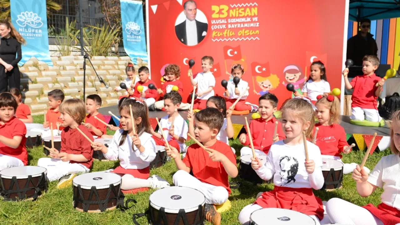 Bursa Nilüfer Belediyesi kreşlerinde eğitim gören çocuklar 23 Nisan Ulusal Egemenlik ve Çocuk Bayramı’nı coşku ile kutladı.BURSA (İGFA) - Bursa Nilüfer Belediyesi bünyesindeki Burak Berk, Ferhat Bakgör ile Çamlıca Kreş ve Gündüz Bakımevi öğrencileri, 23 Nisan Ulusal Egemenlik ve Çocuk Bayramı’nı coşkuyla kutladı. Minik öğrenciler, Çocuk Bayramı için hazırladıkları gösterileri büyük heyecanla sahneledi.
