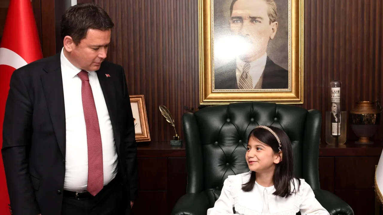 Başkanlık koltuğunu Erkan Aydın’dan bir günlüğüne devralan Sınav Koleji öğrencisi Duru Kılıç ise, “Tüm çocukların 23 Nisan Ulusal Egemenlik ve Çocuk Bayramı’nı kutlarım. Bize bu bayramı hediye eden Gazi Mustafa Kemal Atatürk ve silah arkadaşlarına teşekkürü bir borç bilirim. Öncelikle kreş sayımızı yükselteceğiz. Bu sayede bizler eğitim alırken, annelerimiz de çalışmış olacak. Park sayılarımızı arttıracağız. Sokaktaki canlarımız için daha fazla beslenme ve tedavi alanları oluşturacağız” dedi. Başkanlık koltuğuna oturan Sadi Etkeser İlköğretim Okulu öğrencisi Zeynep Azra Bilik de gelecekle ilgili hayallerini ve isteklerini Başkan Aydın ile paylaştı.